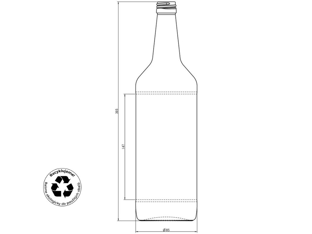 Čirá skleněná lahev na destiláty a jiné nápoje ALKOHOL o plnícím objemu 1000 ml, určená pro víčko o průměru 28 mm, přináší kombinaci moderního designu a širokého spektra využití pro vaše osobní poklady. S možností přilepení etikety až do výšky 140 mm je skvělým prvkem pro vlastní značení a prezentaci.