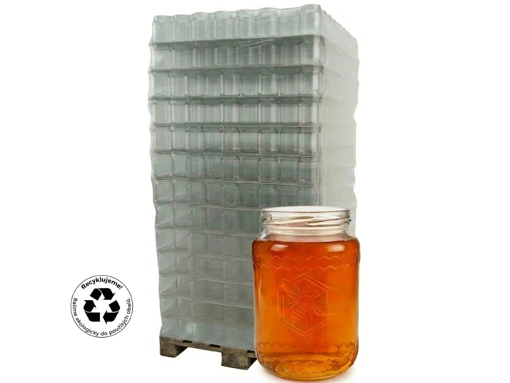 Sklenice dopravujeme na paletách. Zavařovací sklenice se včelou na med - ČESKÝ MED na paletě, se symbolem včely má plnící objem 770 ml (1 kg medu). Je určená pro víčko Twist Off 82. Sklenici je možno opatřit etiketou až do výšky 60 mm.