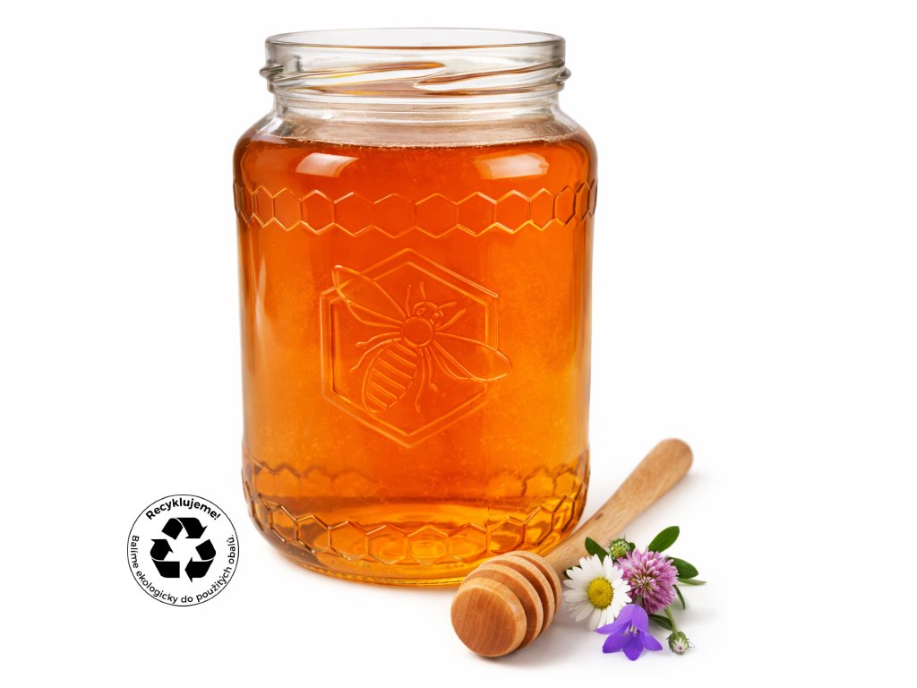 Sklenice na med 770 ml se včelou Český med
