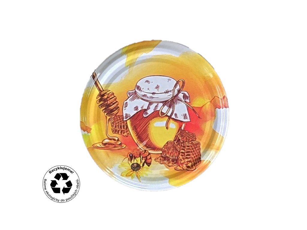 Zavařovací víčko na med s motivem pro snadné otevření i uzavření sklenic zároveň dobře těsní. Je vyrobeno z kovu odolného vůči korozi, agresivním kyselým a zásaditým potravinám - kyselině citronové, vařené soli, octu, vhodné i pro tuky a oleje.