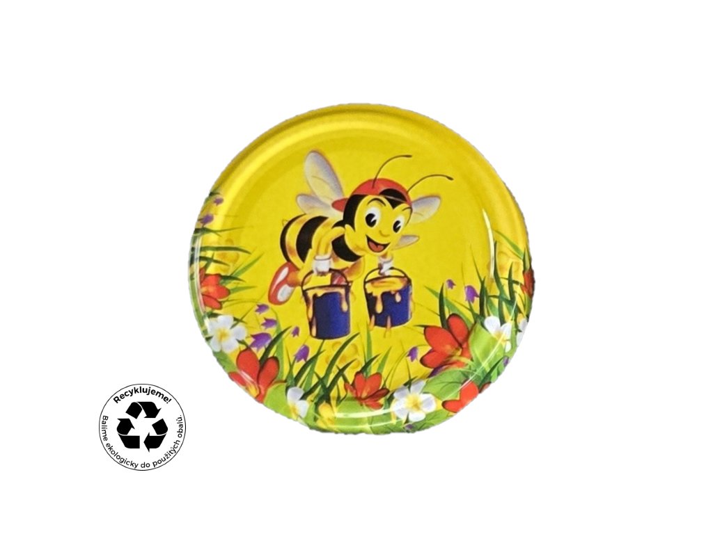 Zavařovací víčko na med TO 82 veselá včelička ke sklenici na zavařování je víčko se šroubovacím uzávěrem typu RTS, průměr: 82 mm. Víčko typu RTS je zavařovací víčko, které má hladký povrch a je vhodné pro konzervaci všech typů potravin.