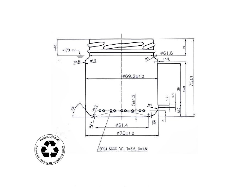 Šroubovací sklenička 210 ml (212) Twist na zavařování o plnícím objemu 180 ml. Na sklenici lze použít šroubovací víčko typu Twist Off 66 a opatřit ji etiketou až do výšky 50 mm.