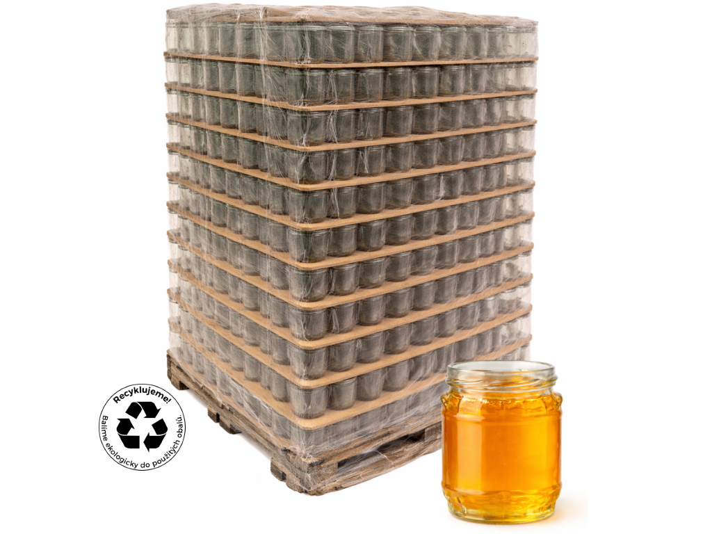 Soudková šroubovací zavařovací čirá sklenice FACETTE o plnícím objemu 350 ml (500g medu) pasuje víčko Twist Off 82. Sklenici je možno opatřit etiketou až do výšky 50 mm.