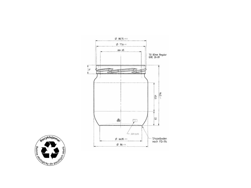 Elegantně zaoblená šroubovací zavařovací čirá sklenice 425 ml Twist GURKEN o plnícím objemu 370 ml (500g medu), pasuje na ni víčko Twist Off 82. Sklenici je možno opatřit etiketou až do výšky 60 mm.