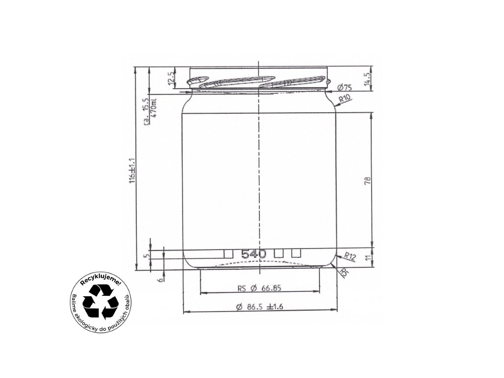Praktická šroubovací zavařovací čirá sklenice VÁLEC o plnícím objemu 470 ml je určená pro víčko Twist Off 82. Sklenici je možno opatřit etiketou až do výšky 78 mm.