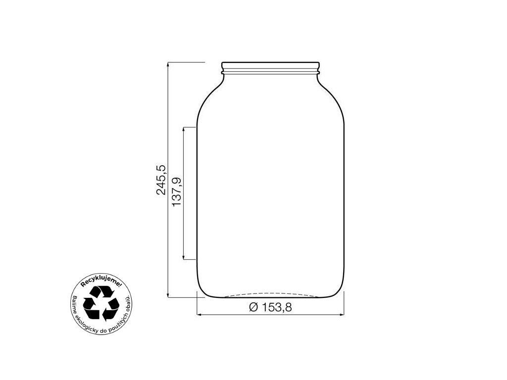 Šroubovací zavařovací sklenice Okurkáč o plnícím objemu 3 600 ml (5 000 g medu). Na sklenici lze použít víčko typu Twist Off 100.