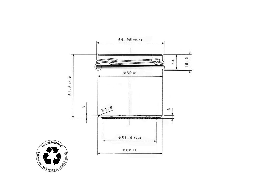 | Rozměry (výška x průměr): | 61,5 mm x 62 mm |